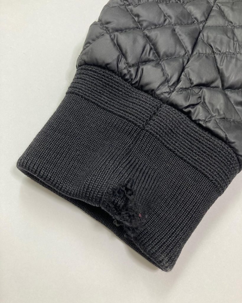 今回ご紹介するのは、キルティングジャケットの袖口に付いているリブに空いた穴を塞いでもらいたいというご依頼でした。