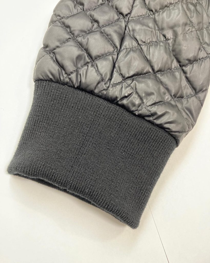 キルティングジャケットの袖のリブ交換の修理例をご紹介します。