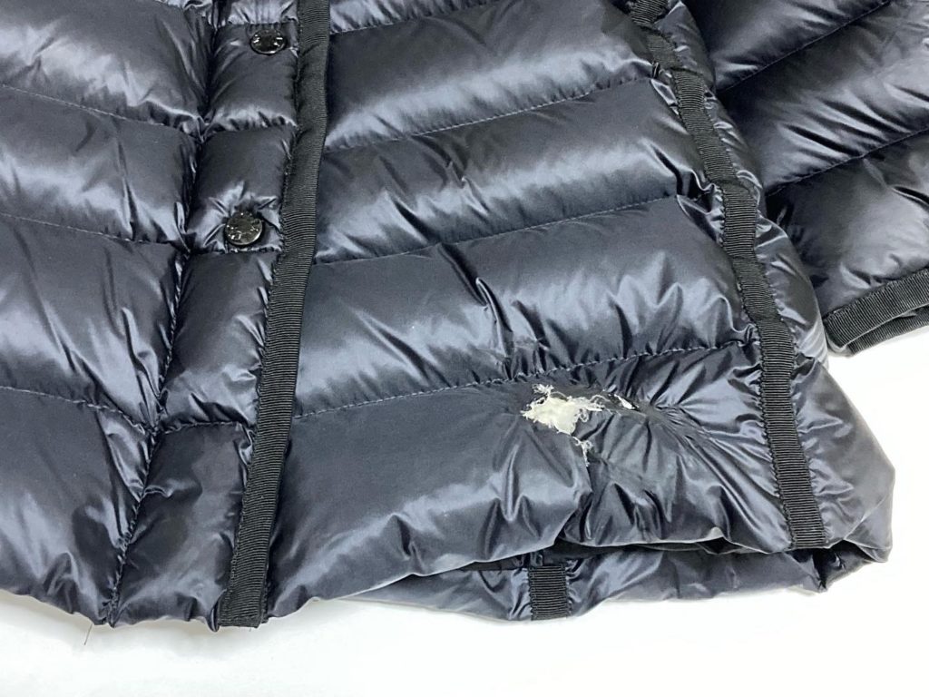 今回ご紹介するのは、モンクレールのダウンジャケットの裾がストーブに当たってしまい溶けてしまったものです。