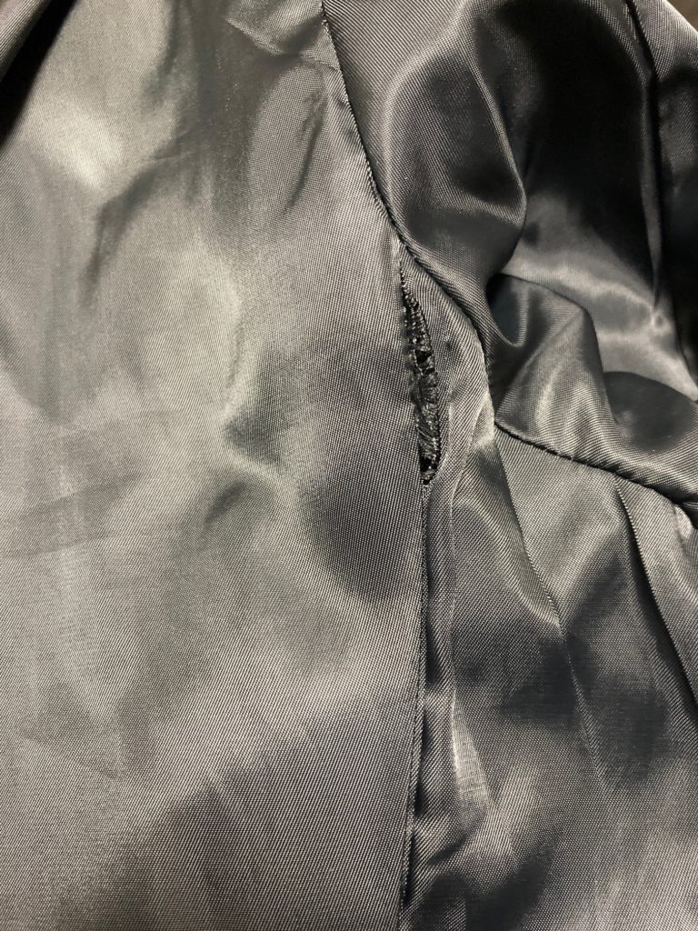 今回ご紹介するのは、コートの裏地が縫い目から破れてしまい、わからないように修理してもらいたい。というご依頼です。